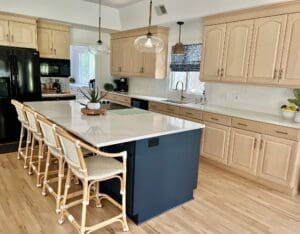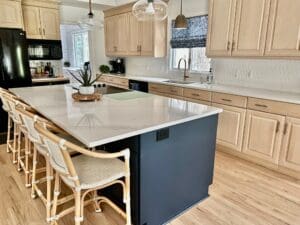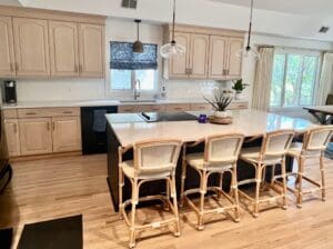 The Kitchen is located on the main floor and is accessible from the foyer. As you can see below the kitchen is fully stocked with everything you need to make hot dogs and hamburgers or a chef inspired meal. Â