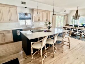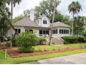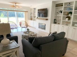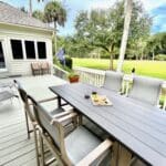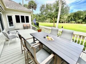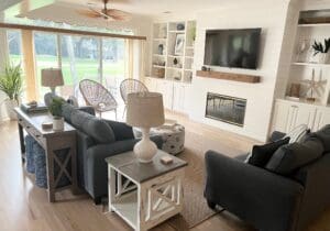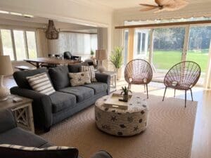 The Sun Room is located off of the dinning room and contains a sofa and two chairs to hang out and watch the golfs stroll by.
