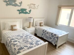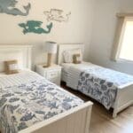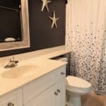 The shared bathroom is shared between the King Bedroom and the Twin Bedroom on the first floor.